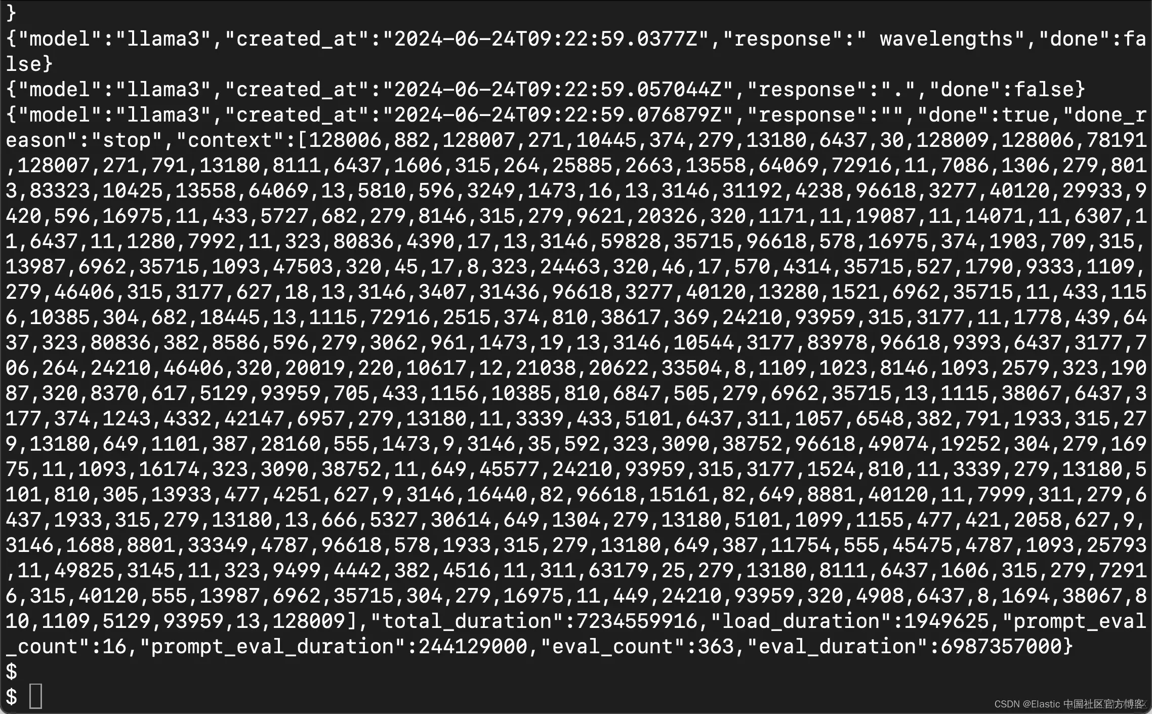 然后我们使用 Llama3 回答你的问题,并使用检索器从 Elasticsearch 中获取的上下文相关数据。