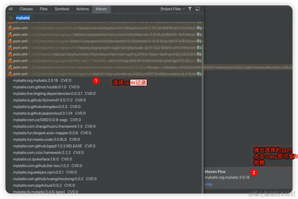 按两下shift按键后会弹出search everywhere,里面会有一个maven的tab,在里面可以搜索pom并显示对应的CVE