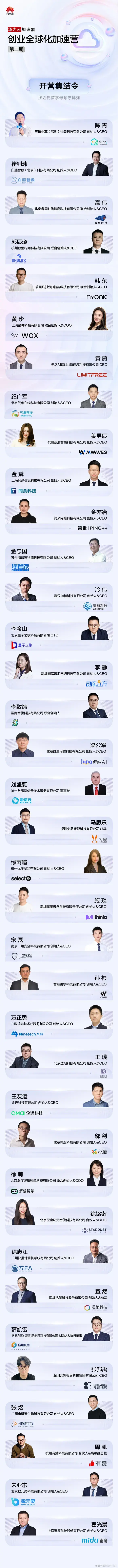 本期加速营专门为创业公司全球化发展的核心需求量身打造,依托华为近三十年的全球化发展经验及华为云的全球生态网络资源。加速营从战略洞察、管理能力提升、专业能力强化、技术赋能以及市场共拓等多个维度,全方位助力创业公司加速发展。课程内容丰富,包括华为云资深高管、行业专家、知名投资人及成功创业者等担任导师,提供管理方法论、海外拓展实战经验、行业洞察等宝贵知识。此外,还包括参访华为总部、标杆企业、私董会、工作坊、围炉夜话及路演等活动。37 位创业者已集结就位,预计 7 月结营。