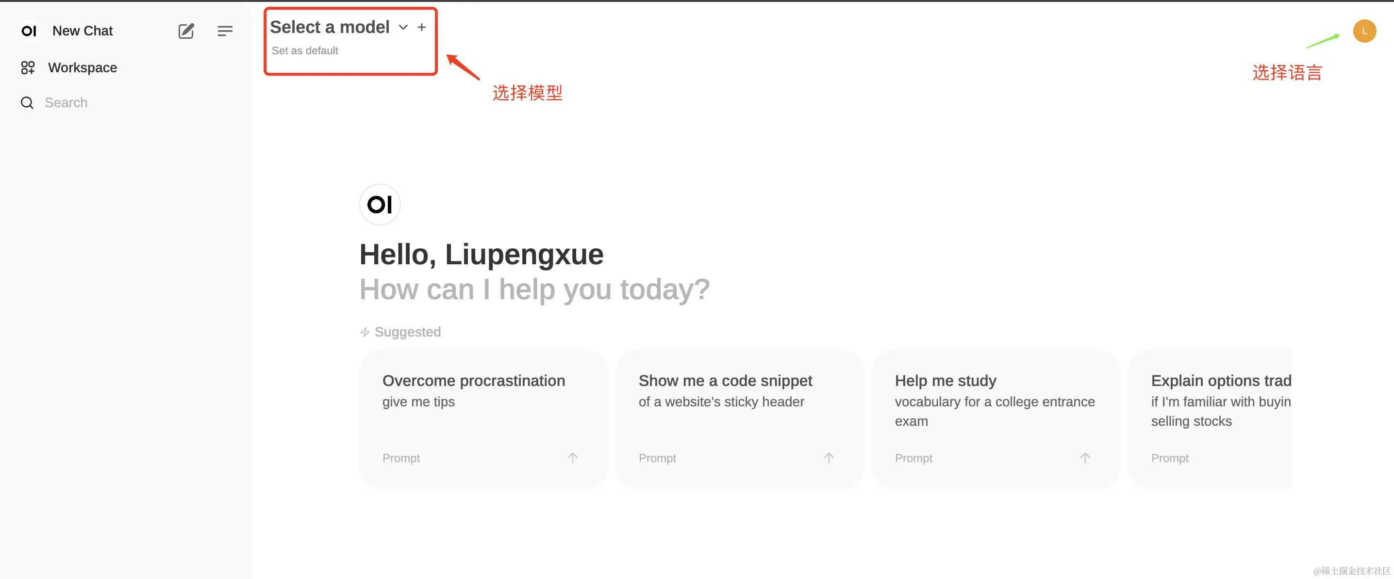c、选择语言和模型
