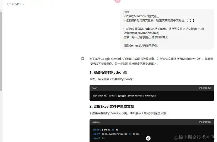 你是一个Python编程专家,现在要基于谷歌Gemini的API来批量生成文章,具体步骤如下:
