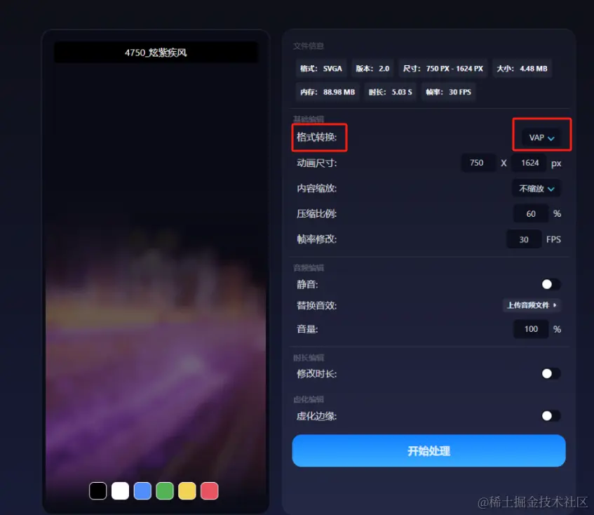 支持多种动态文件(如SVGA,VAP,双通道,Webp,APNG,GIF等)文件格式之间的互相转换