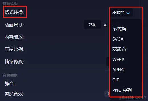 除了基本的格式转换功能外,可以对文件进行尺寸、帧率调整和时长、音频等编辑。能够根据自己的需求选择适合的文件格式,满足不同的使用场景。