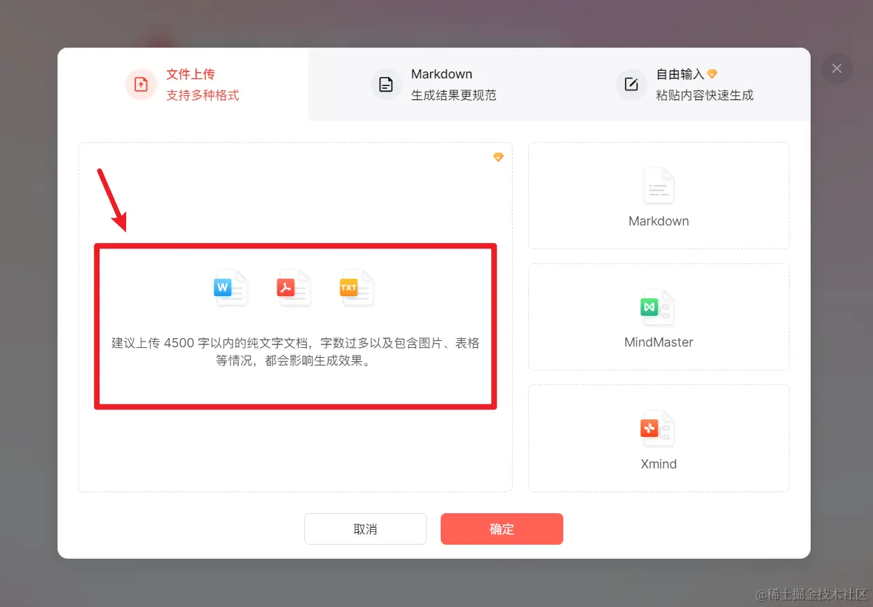 点击文件上传面板左下角的PDF图标,上传本地的PDF文件。