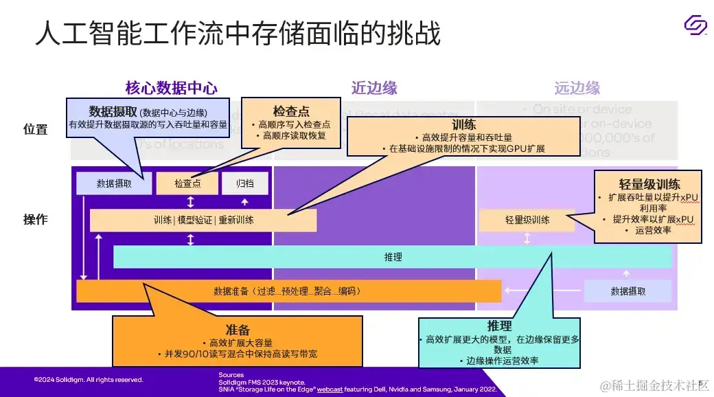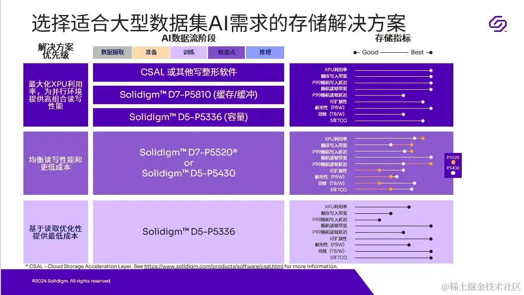 乍一看,擅读的QLC SSD似乎更适合在数据清洗、特征提取、标注等“读多写少”的环节中找到位置。而另一些“读少写多”场景则可能快速消耗QLC SSD的寿命,带来成本和运维压力。但对于QLC赛道的主要玩家Solidigm来说,这些情况都已在产品和方案的考虑范围之内。