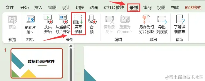 录制方法是点击PPT文稿上方的 【录制】 ,选择 【屏幕录制】 ,框选PPT文稿,进行录制。但PPT录制的录屏文件,如果录制得比较久,经常会存在声画不同步的弊端。