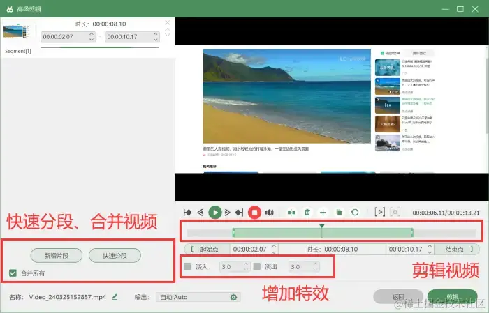 步骤4:录制视频结束时,会弹出预览视频的选项,点击可进入 【高级剪辑】 ,在此页面您可以对视频进行更多的操作。