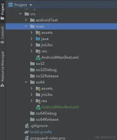 源集=主源集(下图中的main文件夹)+附加源集(下图中的so32、so64、so32Debug、soRelease、so64Debug、so64Release文件夹)