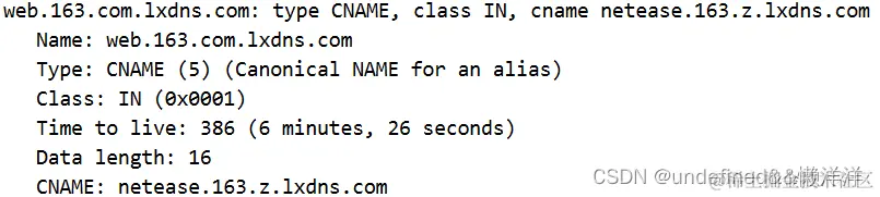 netease.163.z.lxdns.com是别名web.163.com.lxdns.com的规范主机名,TTL是386秒。