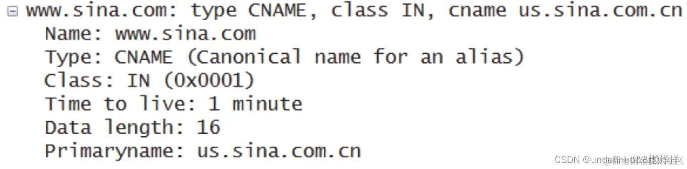 us.sina.com.cn是别名www.sina.com的规范主机名,TTL是1分钟。