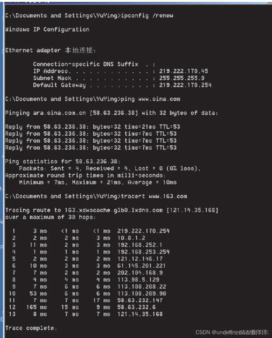 ipconfig /renew;重新配置本地网卡IP地址,执行DHCP协议