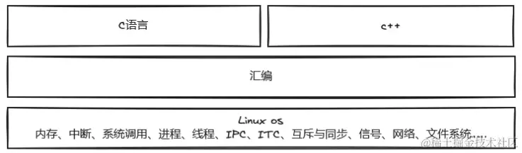 - C语言,极其重要。在c++没有诞生之前开发的软件,存活至今的,都是用c语言写的,最典型的就是Linux内核。所以Linux环境编程、网络编程相关的API,都是c代码风格。基本上可以说,你不会C语言,底层你一点都玩不了!