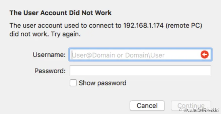 输入的是正确的目标Windows计算机的用户名和密码,出现错误the user account used to connect to remote PC did not work.try again.