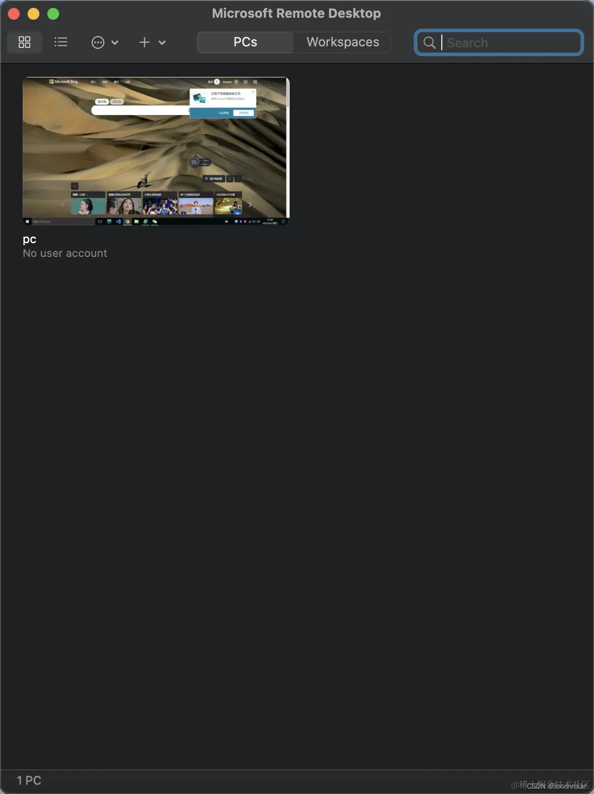 | Mac已下载Microsoft remote desktop,并添加了目标Windows. |