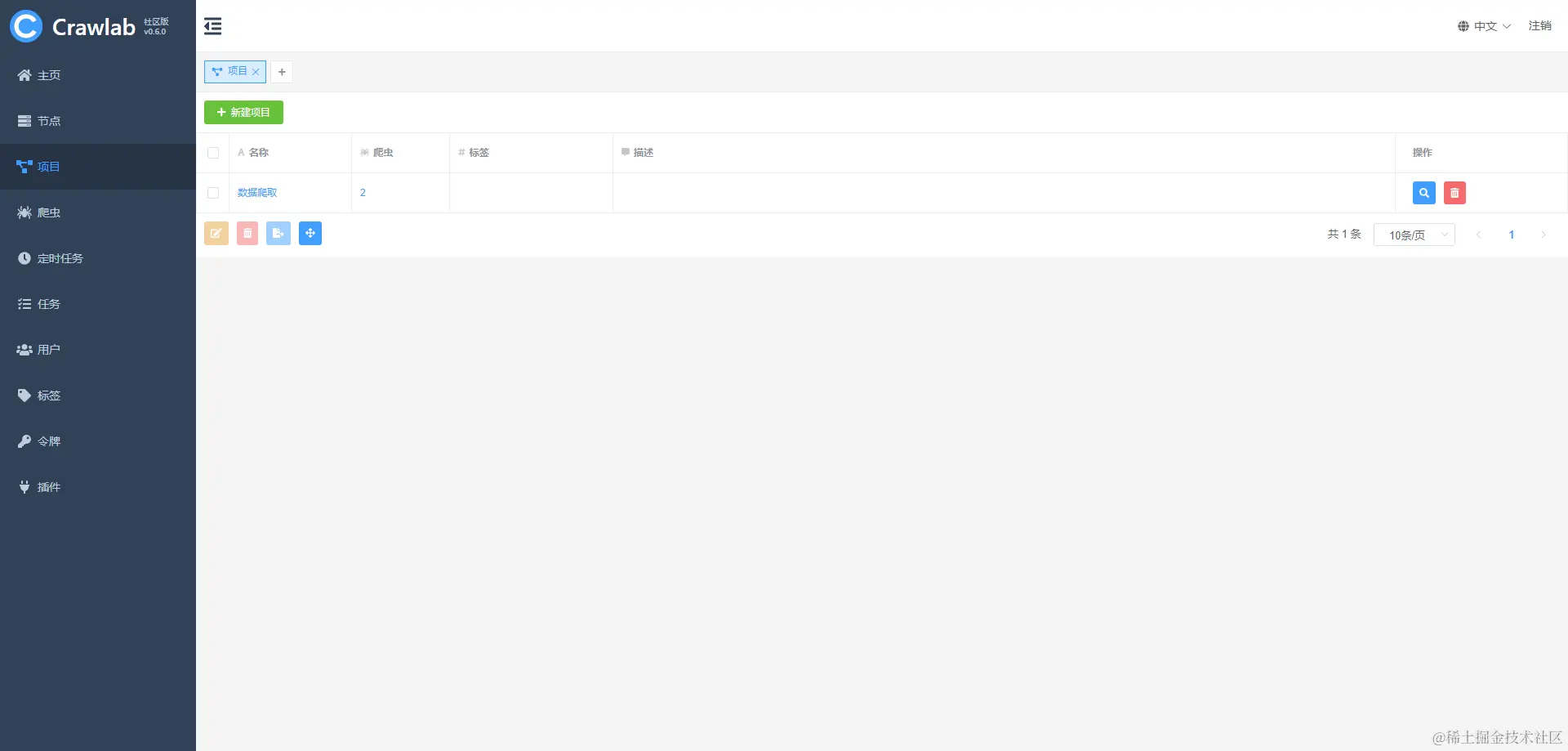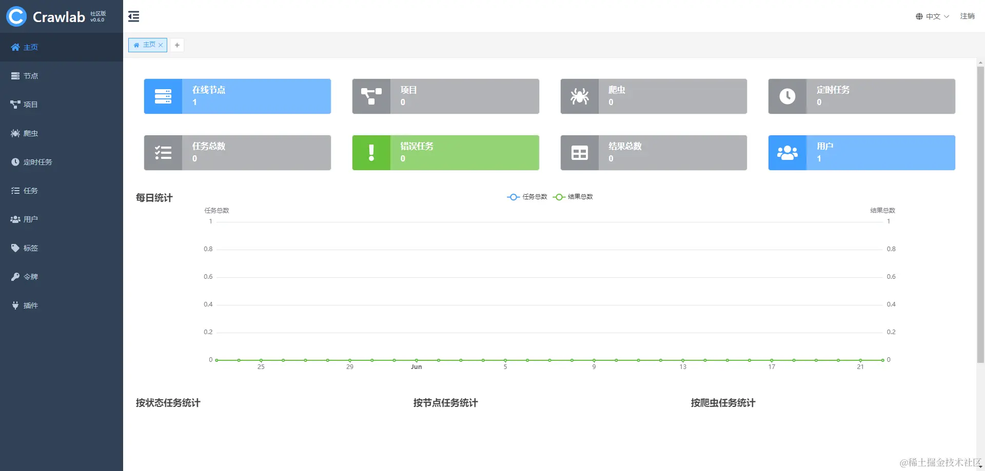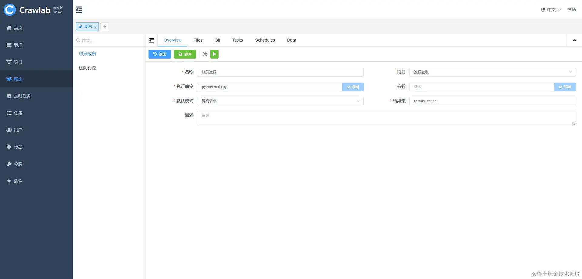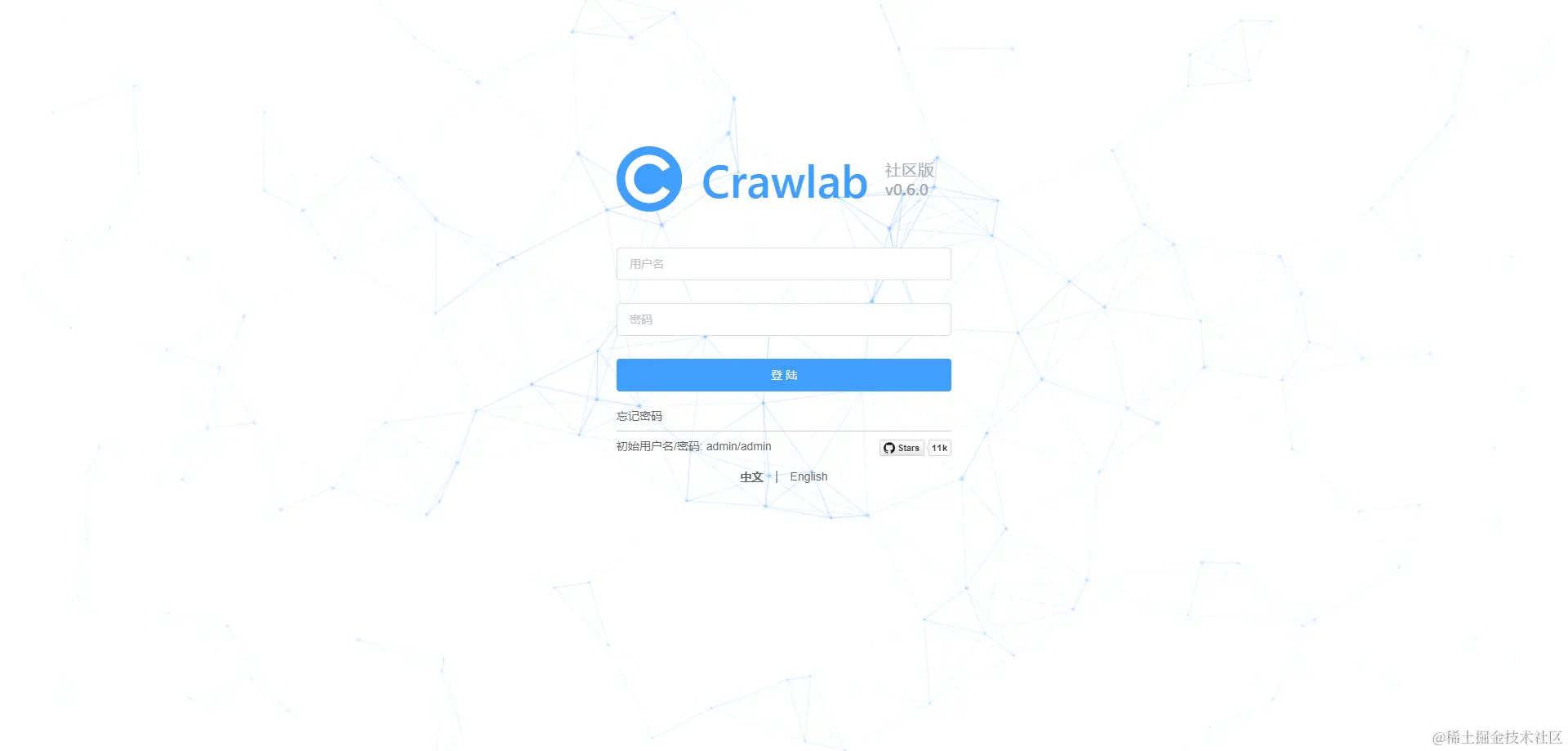 Crawlab,支持体验大多数功能,但是不建议在生产环境中配置,生产环境部署Crawlab可参考官方文档。