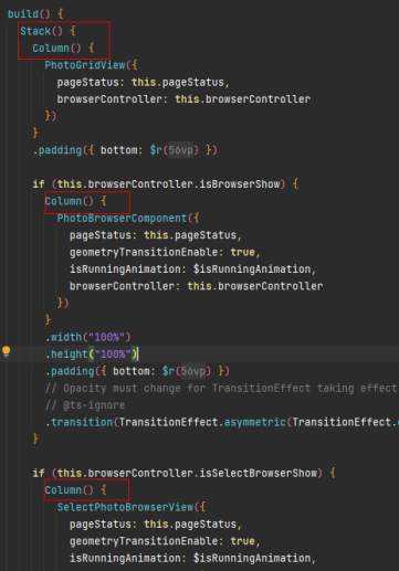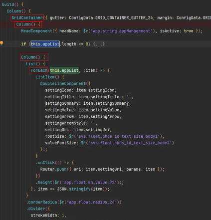 布局中存在冗余布局,如build()函数下第一层的Column布局;例如GridContainer下的嵌套结构,使用了多个线性布局Column嵌套,层级较深。 还有下面的场景示例中也存在频繁使用线性布局导致嵌套过深的情况: