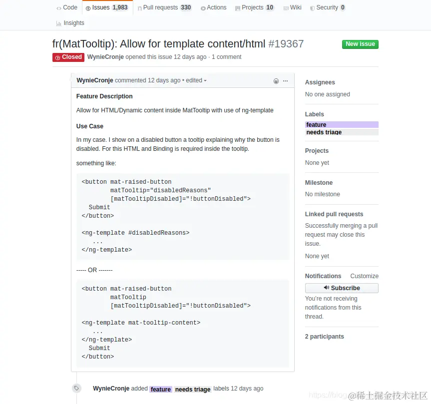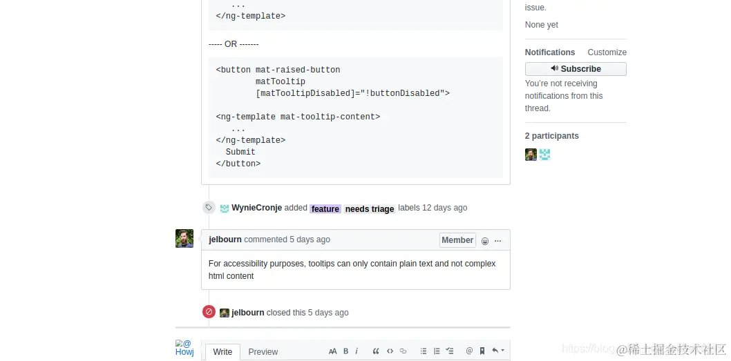 使用Material的组件mat-tooltip时,想要在tooltip里渲染HTML,发现问题在github上被提过.