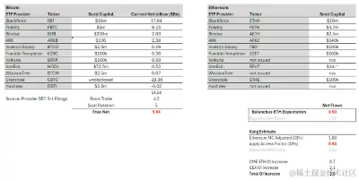 通过这种方式我们可以简单地推断以太坊的资金流量会是什么情况。彭博社 ETF 分析师 @EricBalchunas 估计以太坊流量可能是比特币的 10%。这使得 6 个月内真正的净购买流量为 5 亿美元,报告的净流量为 15 亿美元。尽管 @EricBalchunas 预测的准确率不高,但我相信他代表了一众传统金融机构的态度。