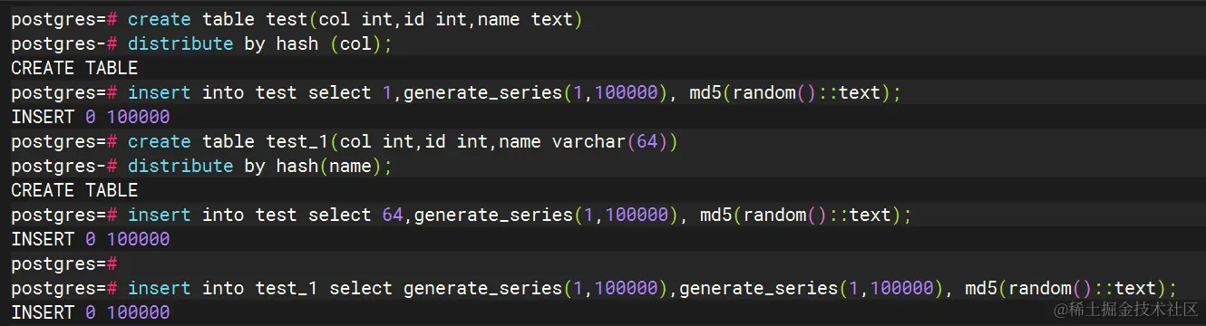 insert into test select 64,generate_series(1,100000), md5(random()::text);