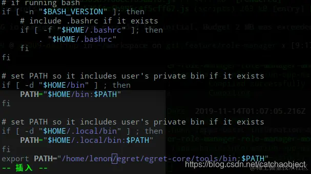我的路径在/home/lenon/egret下。进入~/.profile文件 可以通过vim 进入