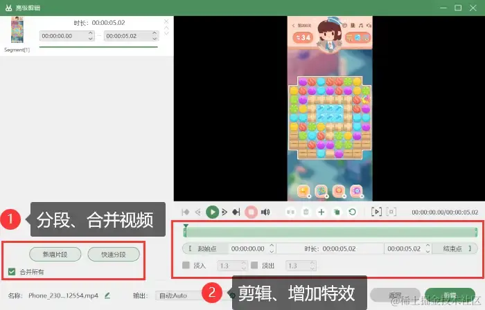 步骤5:录制好的视频,您还可以使用软件中的 【高级剪辑】 对视频进行分段、剪辑、增加特效等。