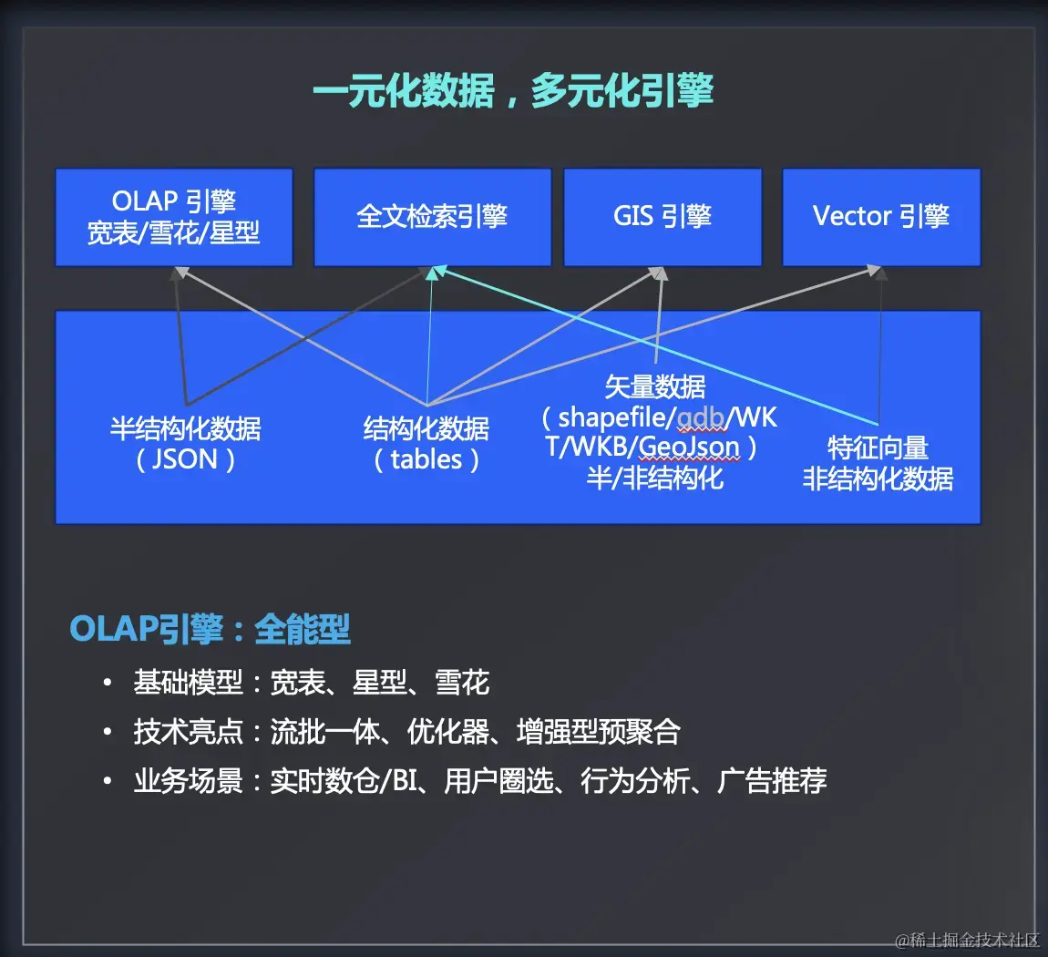 下面着重介绍GIS引擎、Vector引擎和全文检索引擎三个高级分析引擎。
