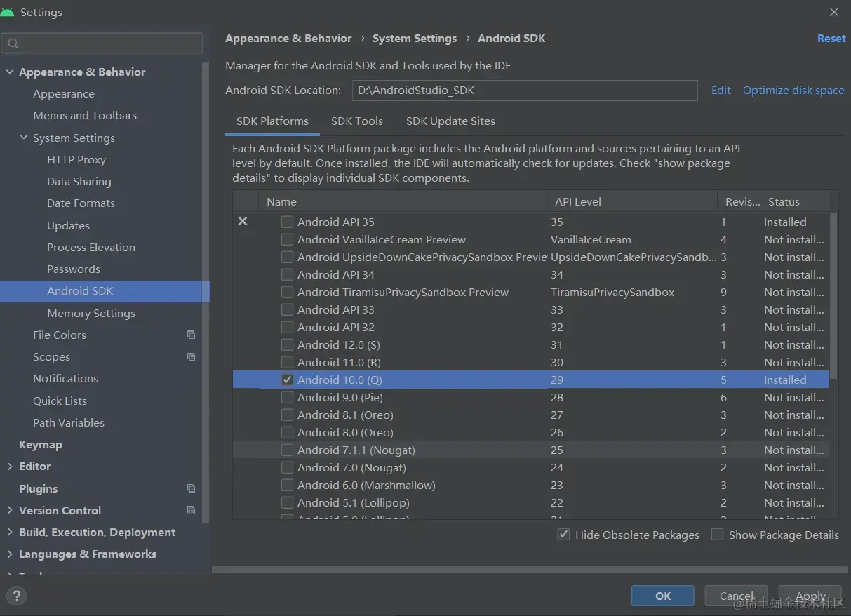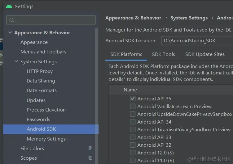 AVD之前已经安装过了,这里配置一下SDK的路径即可