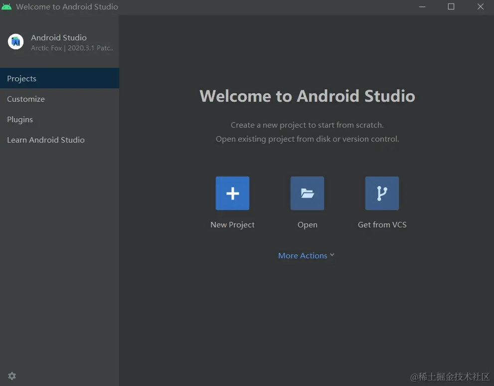 Android Studio版本:2020.3.1.26 北极狐(个人认为比较稳定的版本)