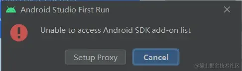 由于没有安装Android SDK所以找不到会报错,点击Cancel即可