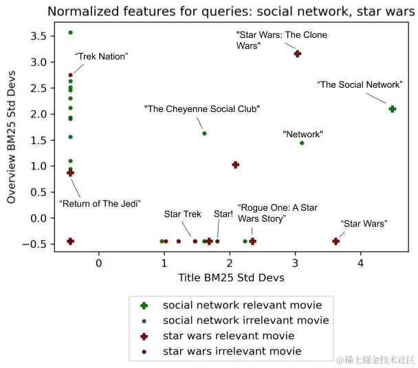 - 相关性与特征之间的关系往往非常非线性。有些因素,比如时效性,在搜索新闻时可能至关重要。而其他因素在搜索规范信息时可能更为重要。甚至在电影搜索中,相关性与标题/概述BM25之间的简单关系也是复杂的。
