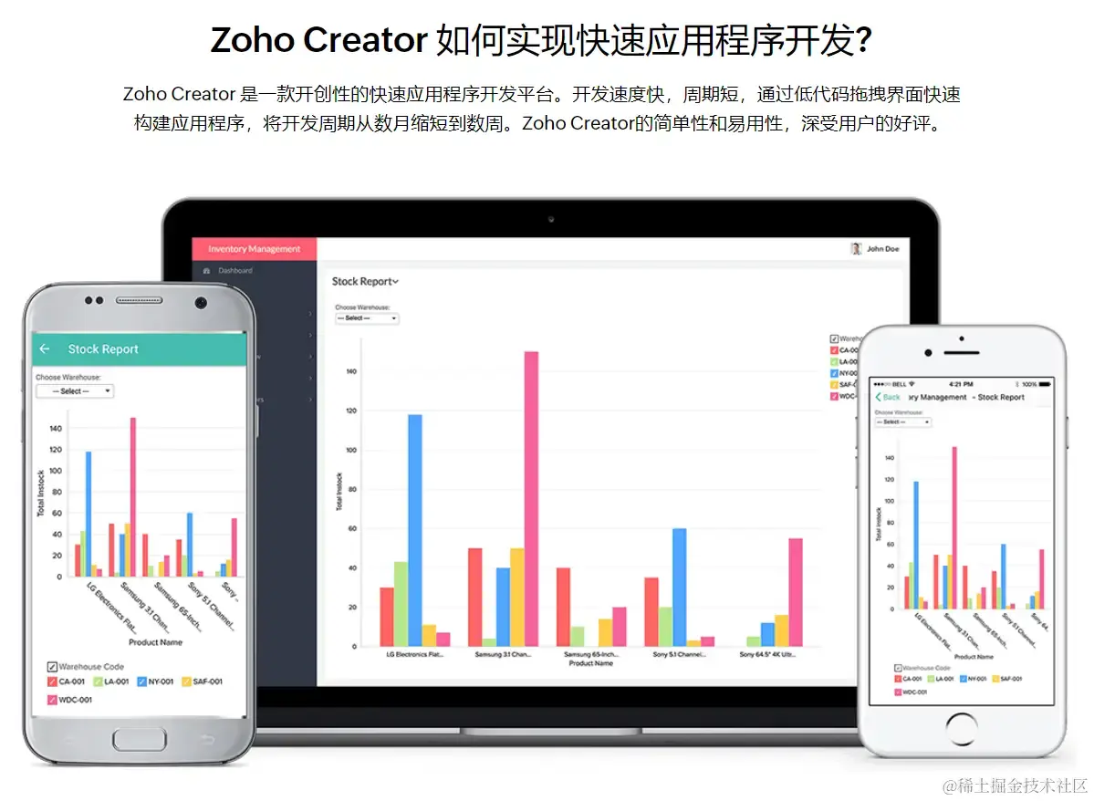 加快开发流程: Zoho Creator可以提供直观的可视化构建器、预构建模板、代码片段和报告/表单模板,这些功能可缩短开发时间。