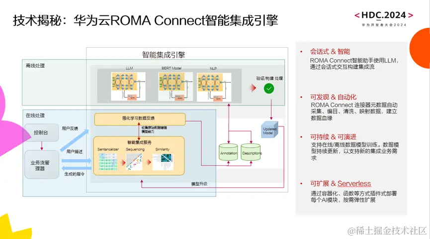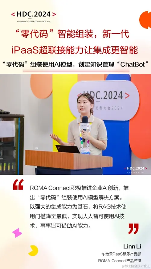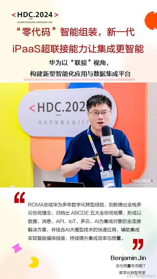 - 华为云产品专家揭秘 —— 华为云产品专家现场揭秘AI加持下的ROMA Connect智能化构建之路,展示如何利用AI技术优化企业集成流程,提升集成效率。