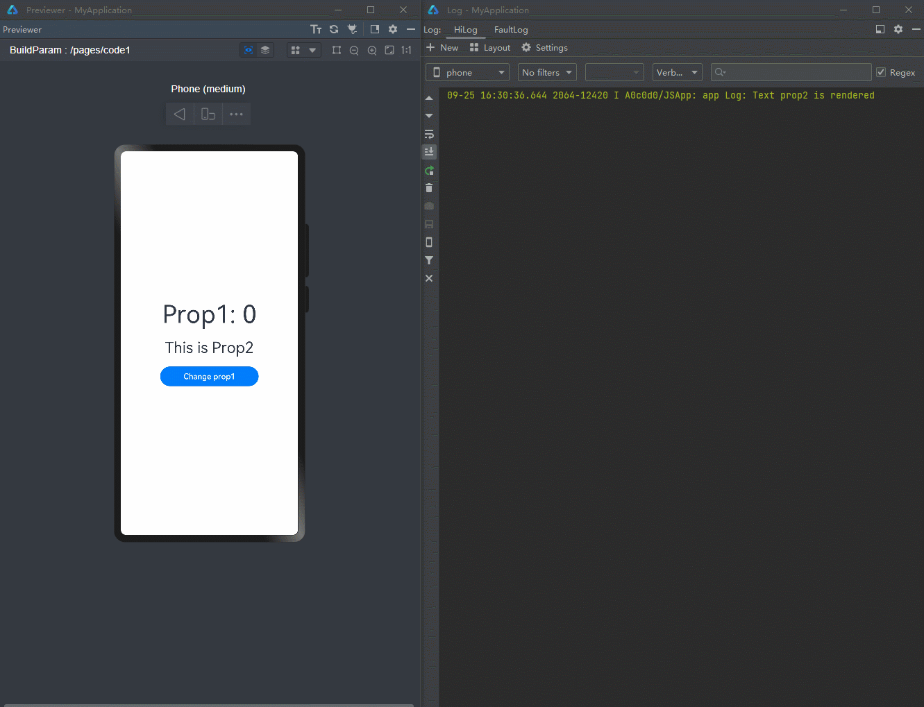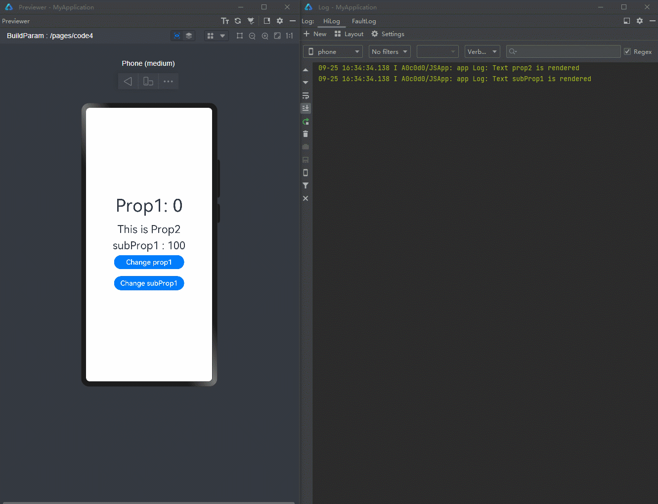 在上面的示例中,当点击按钮改变prop1的值时,尽管CompA中的组件并没有使用prop1,但是仍然可以观测到关联prop2的Text组件进行了刷新,这体现在Text组件的字体变大,同时控制台输出了“Text prop2 is rendered”的日志上。这说明当改变了一个由@Observed装饰的类的实例对象中的某个属性时(即上面示例中的prop1),会导致所有关联这个对象中某个属性的组件一起刷新,尽管这些组件可能并没有直接使用到该改变的属性(即上面示例中使用prop的Text组件)。这样就会导致一些隐形的“冗余刷新”,当涉及到“冗余刷新”的组件数量很多时,就会大大影响组件的刷新性能。