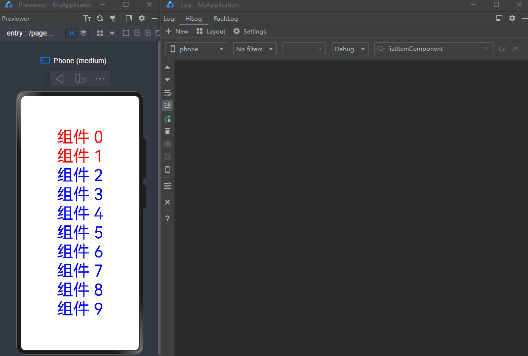ButtonComponent组件作为交互组件触发数据变更,ListItemComponent组件接收数据做相应的UI刷新。