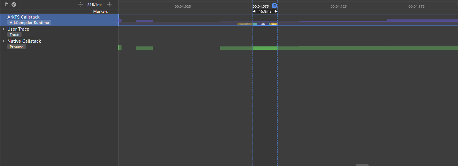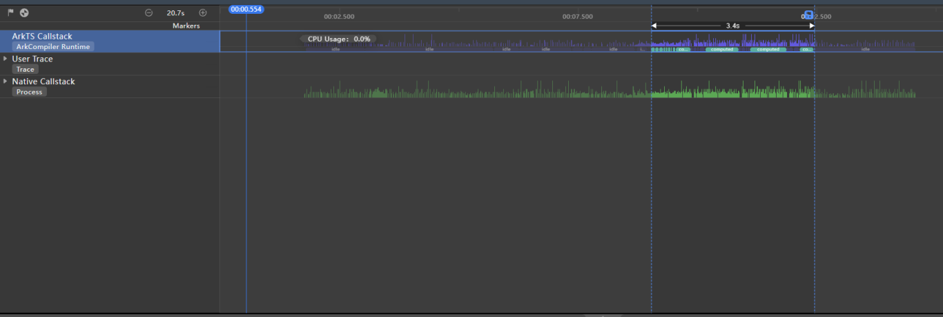 在ArkTS Callstack泳道中,可以看出当前的进程中没有大量的computed耗时任务,而是直接调用getCacheData获取缓存数据,减少了应用IPC通信次数。