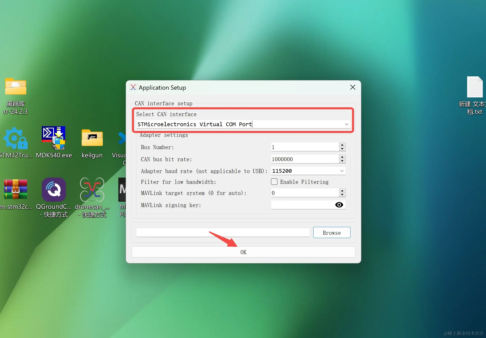 将气压计连接到飞控的CAN1口,需要注意的是,请确保你的飞控已经开启了CAN总线支持和已经设置通讯协议为DroneCAN,如果你不确定你是否完成了该设置,你可以查看ardupilot文档来检查你的飞控,文档链接:ardupilot.org/plane/docs/… 然后将飞控通过typeC线连接到电脑,打开MissionPlanner,选择对应的COM端口和波特率,点击Connect,等待MP与飞控完成连接。