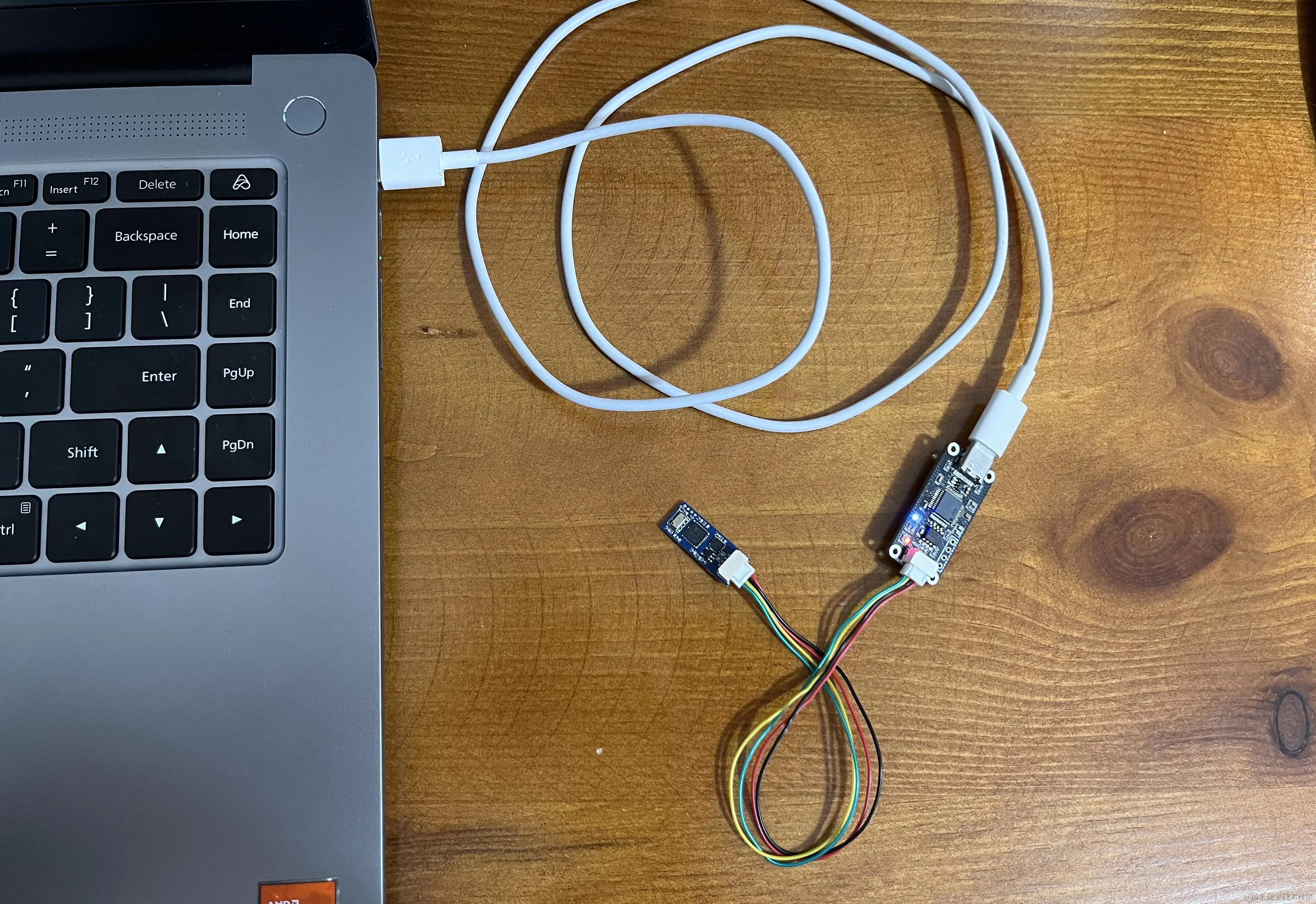然后将模块与DroneCAN调试器相连,并通过typeC将调试器接到电脑上,如下图所示。