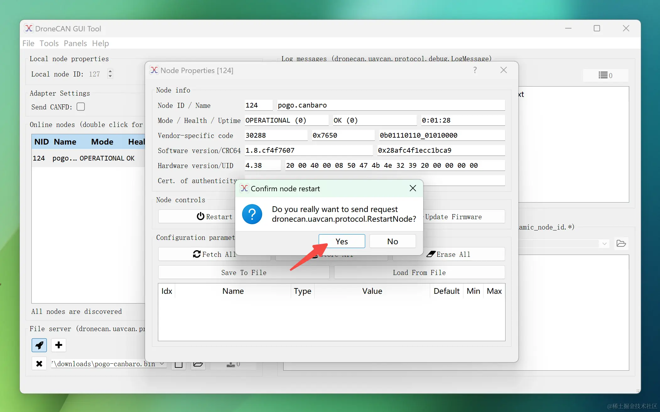 更新完成后,可以点击Restart重启模块,来确保模块已经在运行最新的固件,至此,我们就完成了Pogo-DroneCAN MS5611 气压计模块的更新,Pogo智能科技的其他Ardupilot/Pixhawk外设模块的固件更新也是如此。