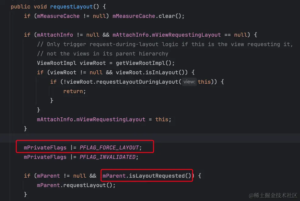 但 requestlayout 有一个类似锁的机制,避免重复的布局请求,在请求requestlayout 时会设置一个标志位