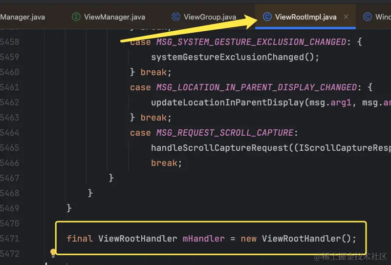 那么证明,如果在子线程创建了 ViewRootImpl ,那么 mThread就会被初始化成子线程,即可在子线程进行 UI 操作。那么看下ViewRootImpl 在哪可以创建实例。