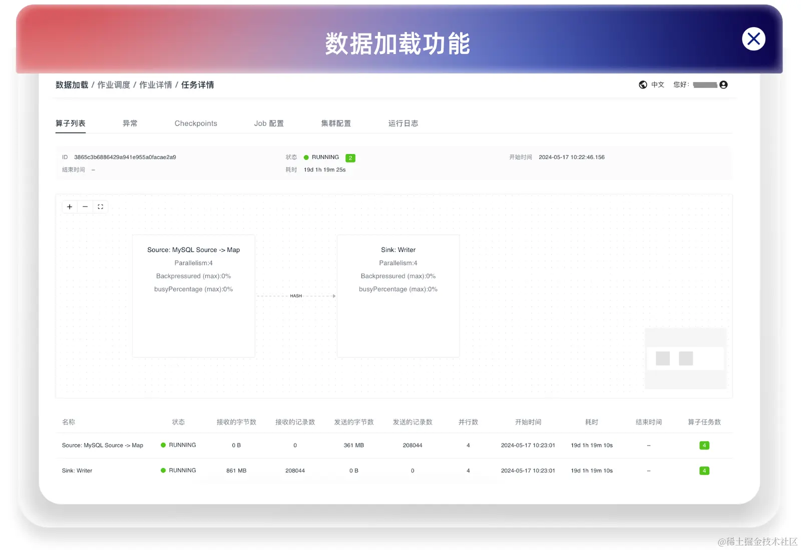 PieCloudDB 云原生平台新增数据加载功能。数据加载支持从不同的数据库抽取数据并加载到 PieCloudDB,并基于云原生平台实现流程的可视化管理和监控。用户只需要在平台上配置数据源、数据流和作业调度,即可进行数据全量迁移与备份的可视化、精细化管理。