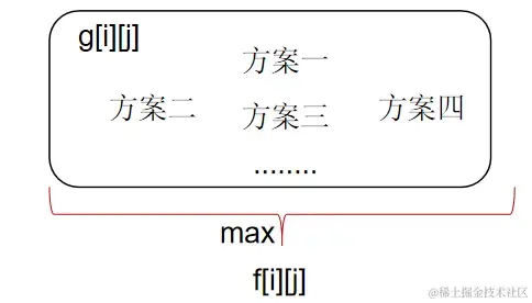 g[i][j] 的最大值就是 f[i][j]。