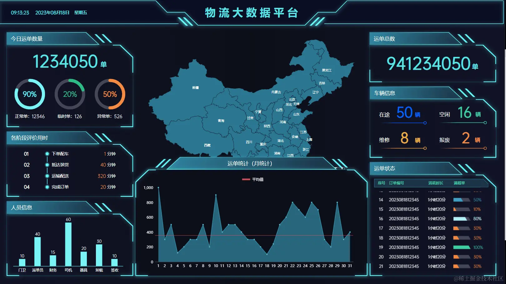 大屏数据可视化非常适合监控运输线路、订单状态、车辆信息等。通过实时数据展示,物流公司可以优化运输路线和方式,降低运输成本,提升配送效率。