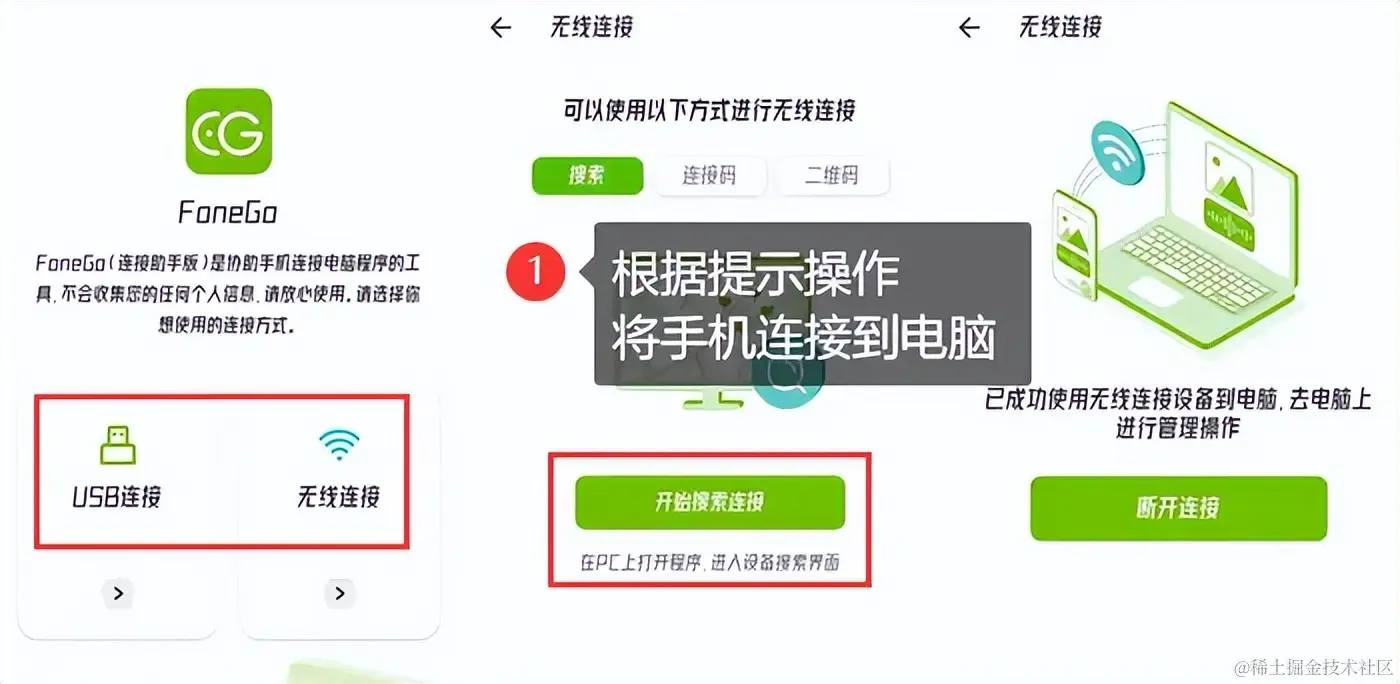 第一步:在正规渠道上将它下载至电脑中,然后启动,按照界面指引将手机与电脑进行连接。