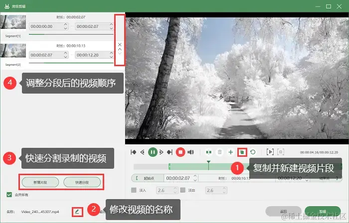 步骤4:录制完成后,用户可以使用软件提供的视频编辑功能对录制的视频进行剪辑,处理完成后,导出视频文件即可。