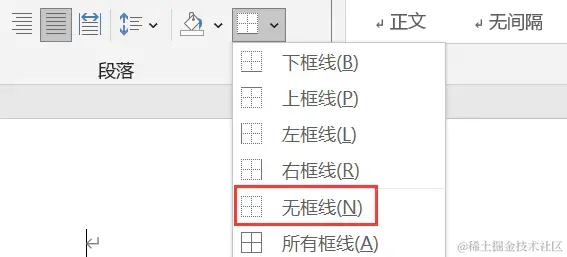 步骤2:从下拉菜单中选择【无边框】或其他合适的边框样式。这样,横线就会被成功移除,而页眉的其他内容则保持不变。