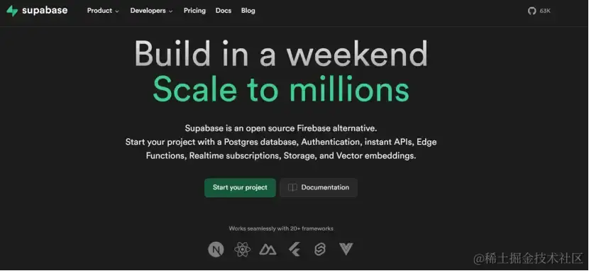 Supabase被誉为开源的“Firebase替代品”,提供了一整套开源工具,包括实时PostgreSQL数据库、函数即服务、身份验证和存储。Supabase的强项在于它的开放性和可自托管性,让开发者能够保持对数据的完全控制,同时享受云服务的便利性。它支持React、Vue和Next.js等前端框架,是开源爱好者和注重数据主权的企业的优选。