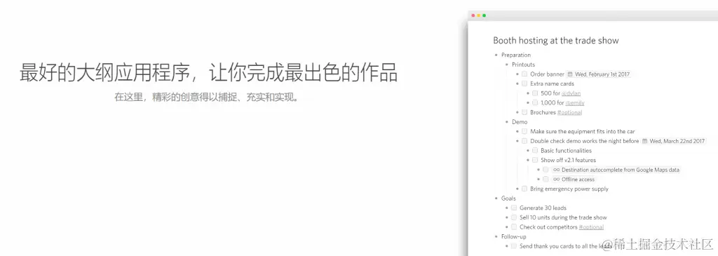 - 多层级大纲创建:用户可以创建包含子项目的多层级大纲,帮助清晰地组织复杂的项目和想法。