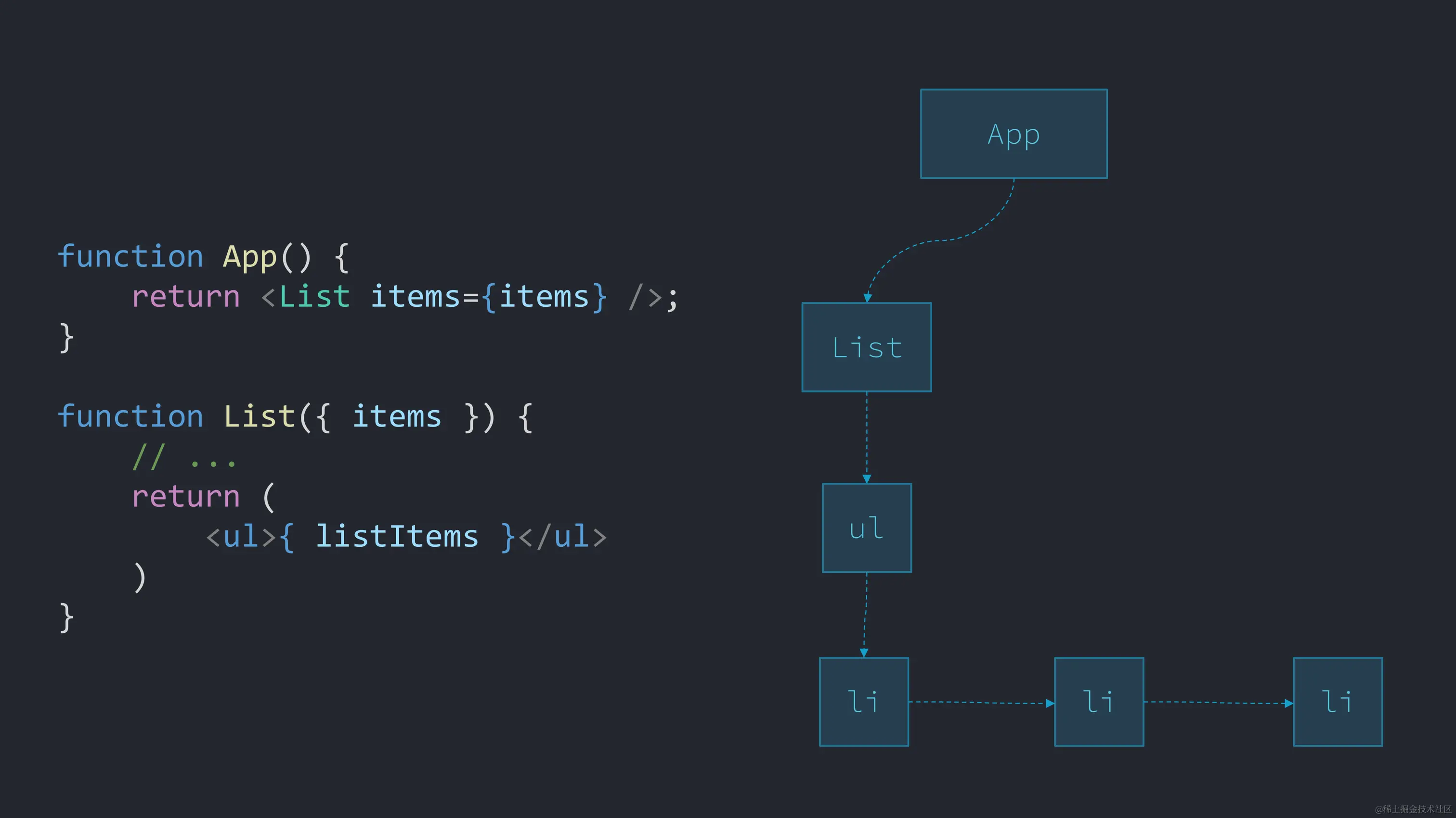 让我们以一个用于处理大量项目列表的 React 应用为例。假设我们的App函数获取了一些项目,然后我们的List函数处理并显示它们。