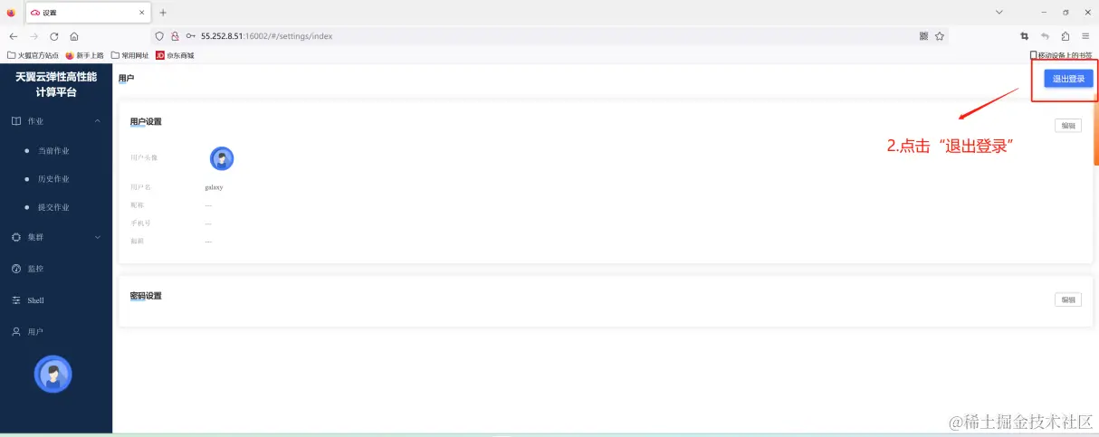 登出功能需要在用户界面操作(需要说明的是:如果用户直接关闭浏览器而不是点击退出登录,30分钟后会仍然会被被系统判定为登出):